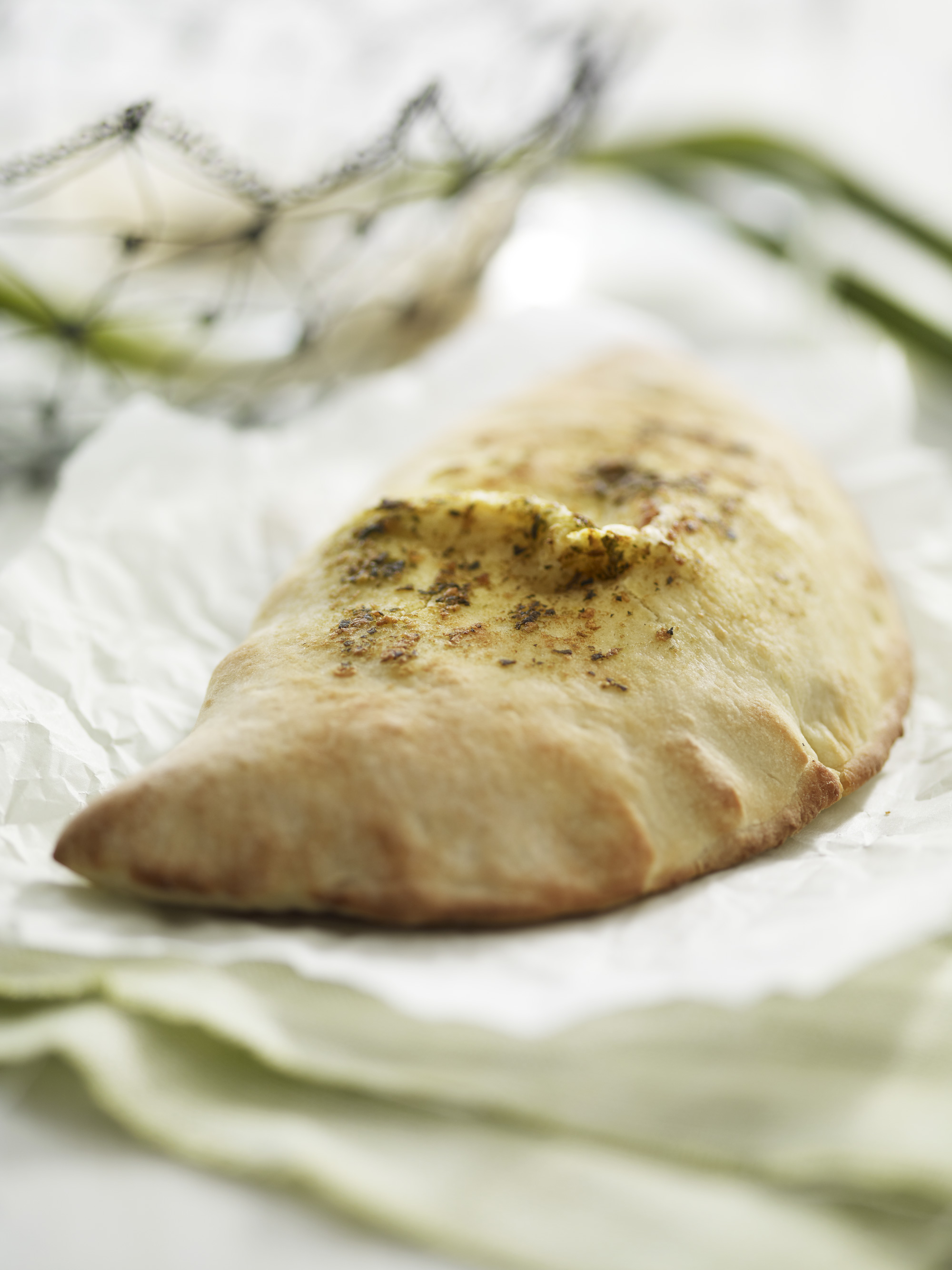 A hand folded Calzone filled with marinated chicken, cheese and our favourite pesto dressing.