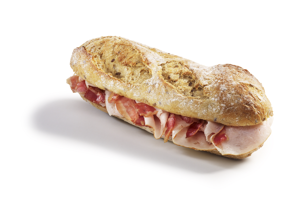 Rustikt brød fylt med sprøstekt bacon, kalkun og en pikant dijonese-saus. Høyt innhold av frø og korn gir et saftig og holdbart bakverk med mye smak.