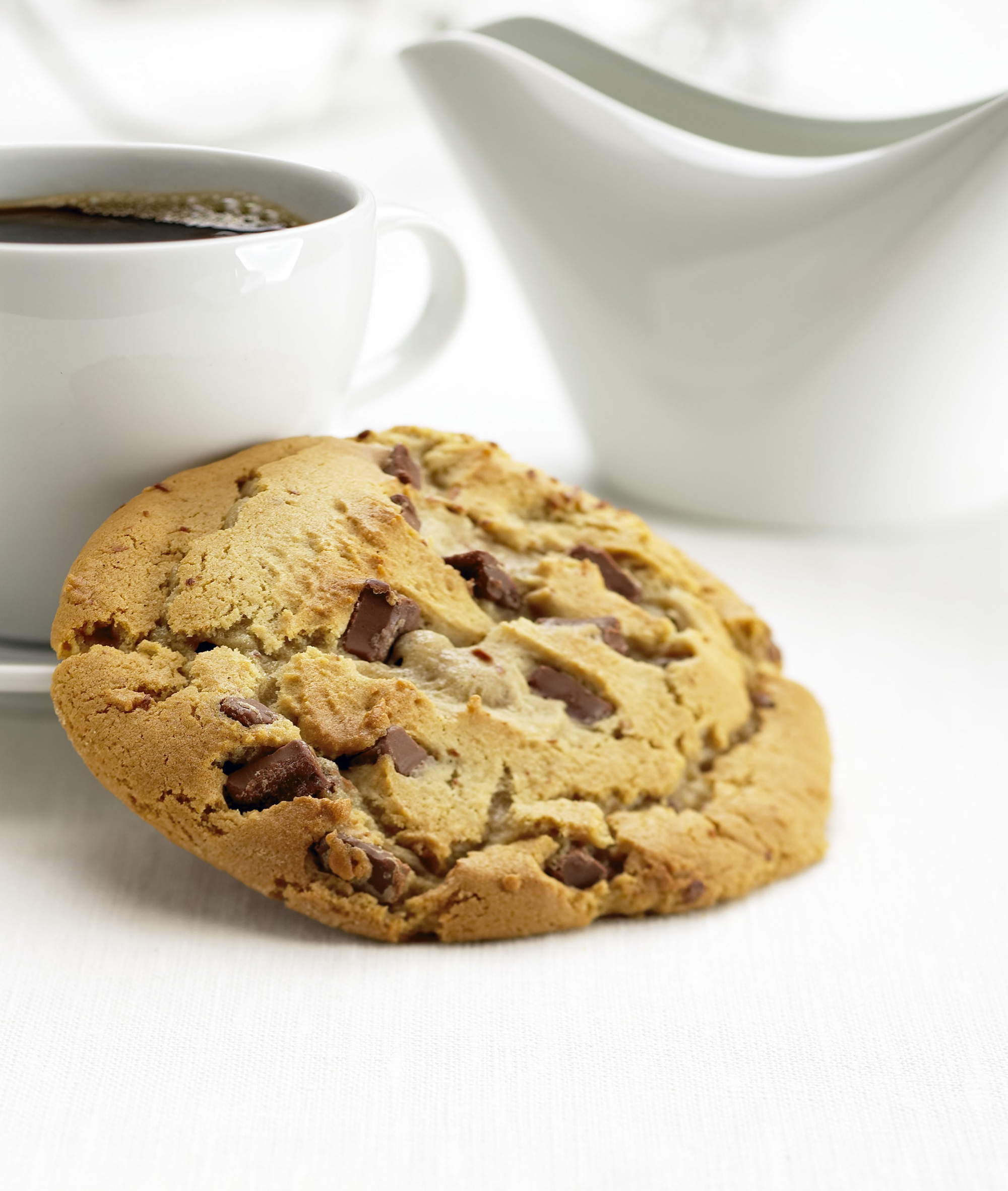 Big American cookie which is soft in the middle and filled with chunks of milk chocolate.