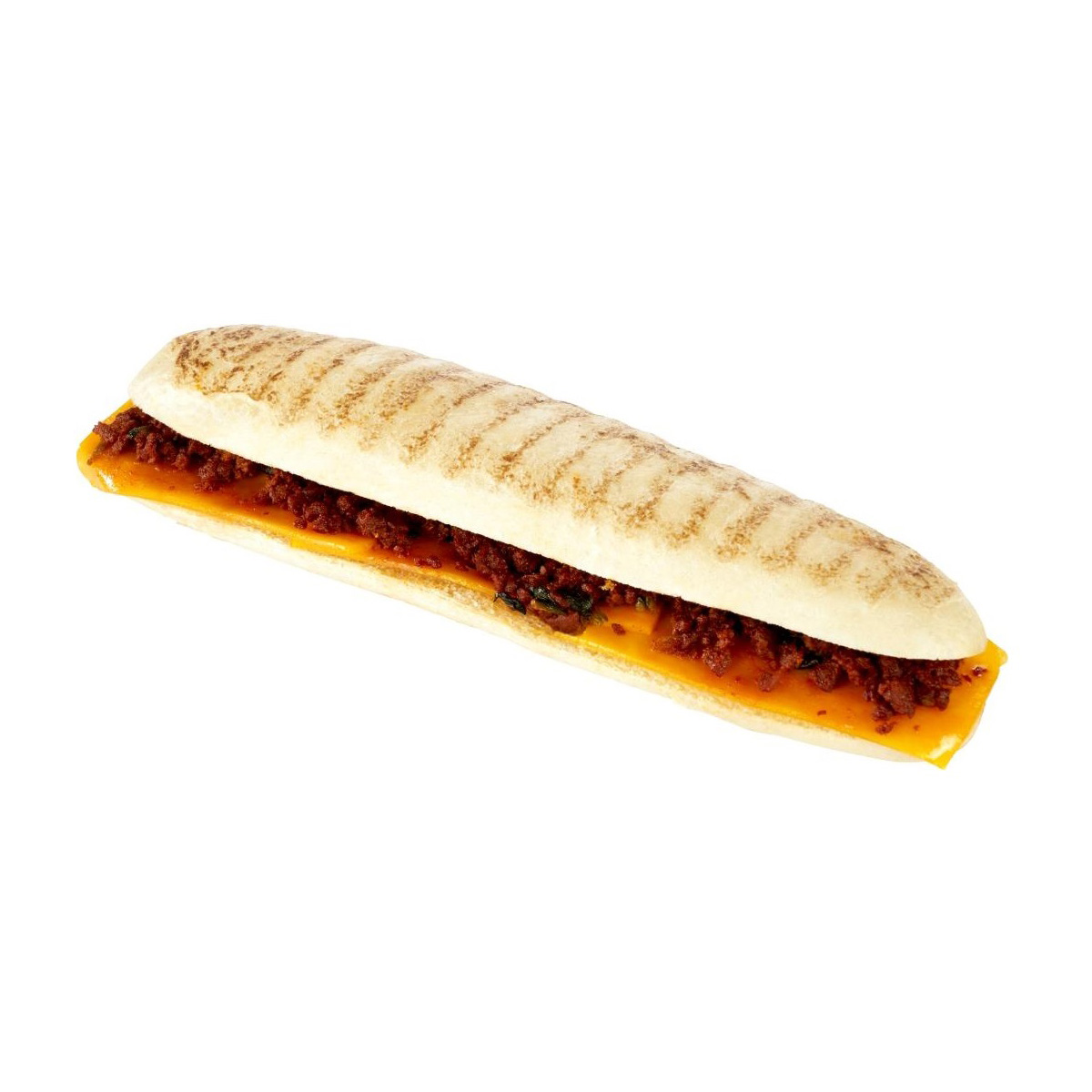 En klassisk panini med grillränder, fylld med vegansk chorizo, vegansk cheddar och spenat.